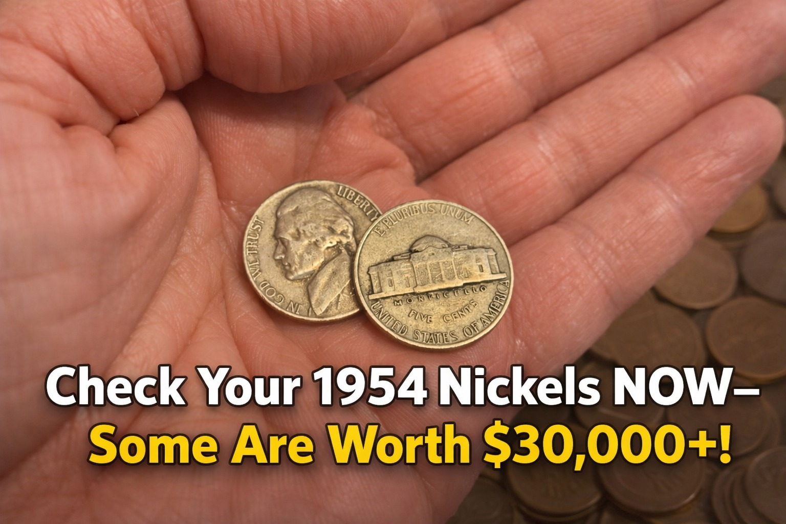 All 1954 Jefferson nickels are worth more than face value, and some are worth way more than five cents. (In a moment, I’ll show you how much your 1954 nickels are worth.)
