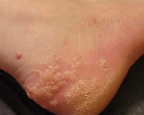 Fungal infections: If you slip on a pair of previously owned shoes, you could be inviting fungi that cause athlete’s foot and nail infections to set up home on your feet. These infections usually present as itching, redness, peeling skin, or yellowed nails rather than a nodular, firm lesion.